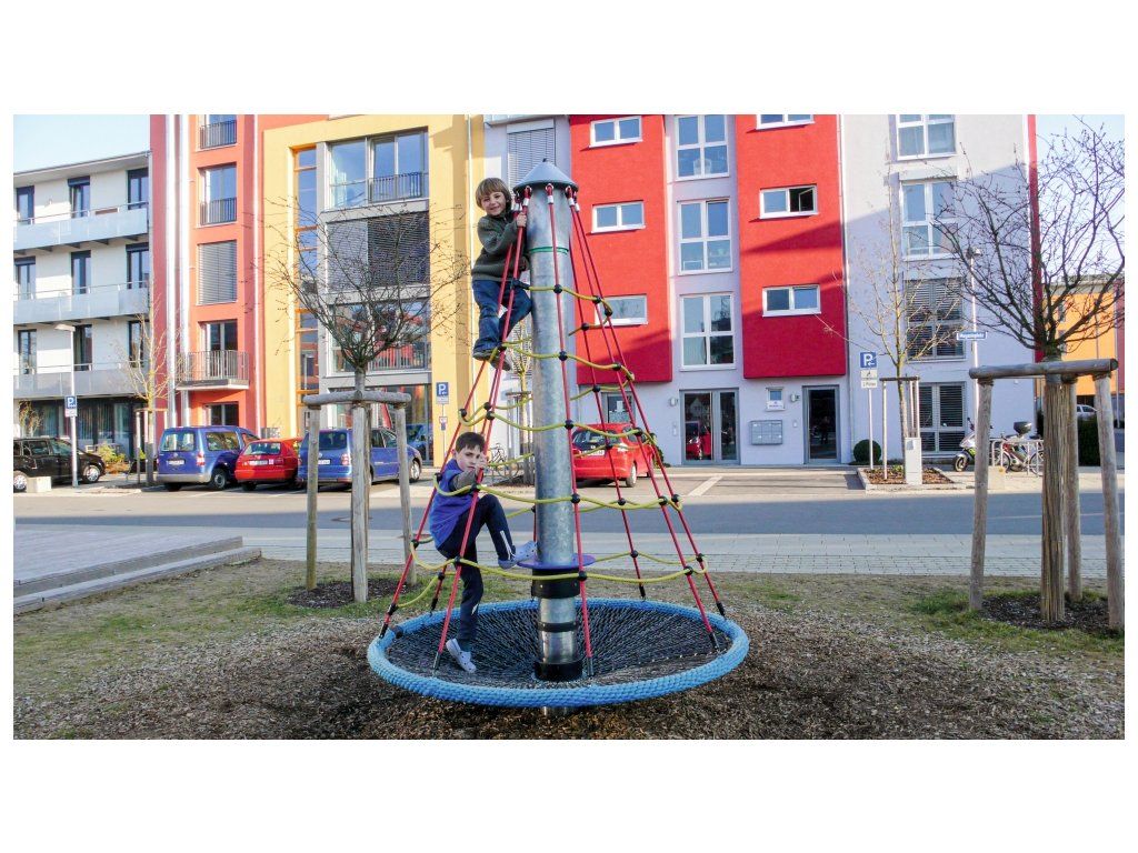 1 ocelový sloup (Ø 20 cm), délka 3,80 m, s VA ochranou sloupu 1 originální Ptačí hnízdo Huck (Ø 1,90 m) lana a sítě z lana Herkules (Ø 16 mm, 6 pramenů, s ocelovou vložkou) Výška prvku: 3.00 m Rozměry prvku: Ø 1.90 m Plocha na ochranu proti pádu: 28.25 m2 Min. bezpečný prostor: Ø 7.00 m, doporučujeme Ø 10.00 m Výška pádu: 2.00 m Potřebné množství betonu: 1,20 m3 Počet uživatelů: 13 Doporučený min. věk: pro děti od 3 letDoplňkové parametry
