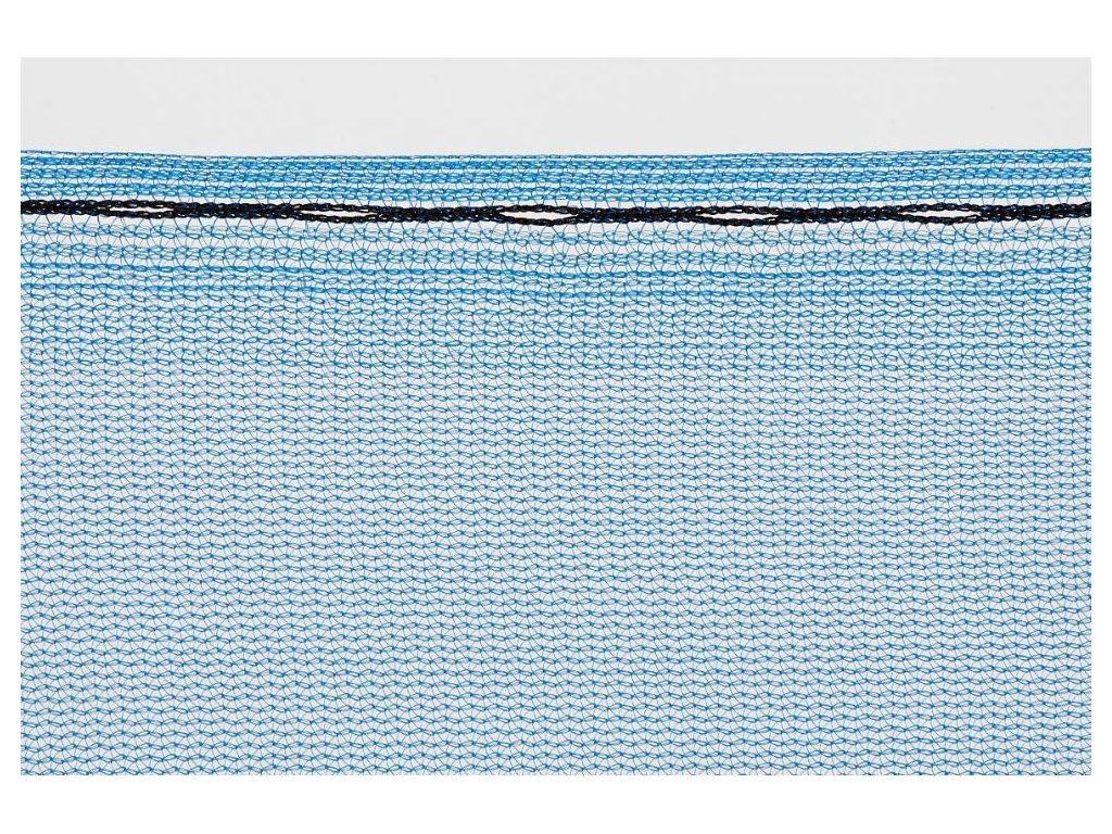 lešeňová ochranná síť cca 50 g/m2 materiál HDPE-monofilament-rašlový úplet na obou delších bočních stranách a ve středu vetkávaná polyesterová příze knoflíkové dírky po 5 cm, barva černá odolnost v tahu 210 N / 5 cm barva modráDoplňkové parametry