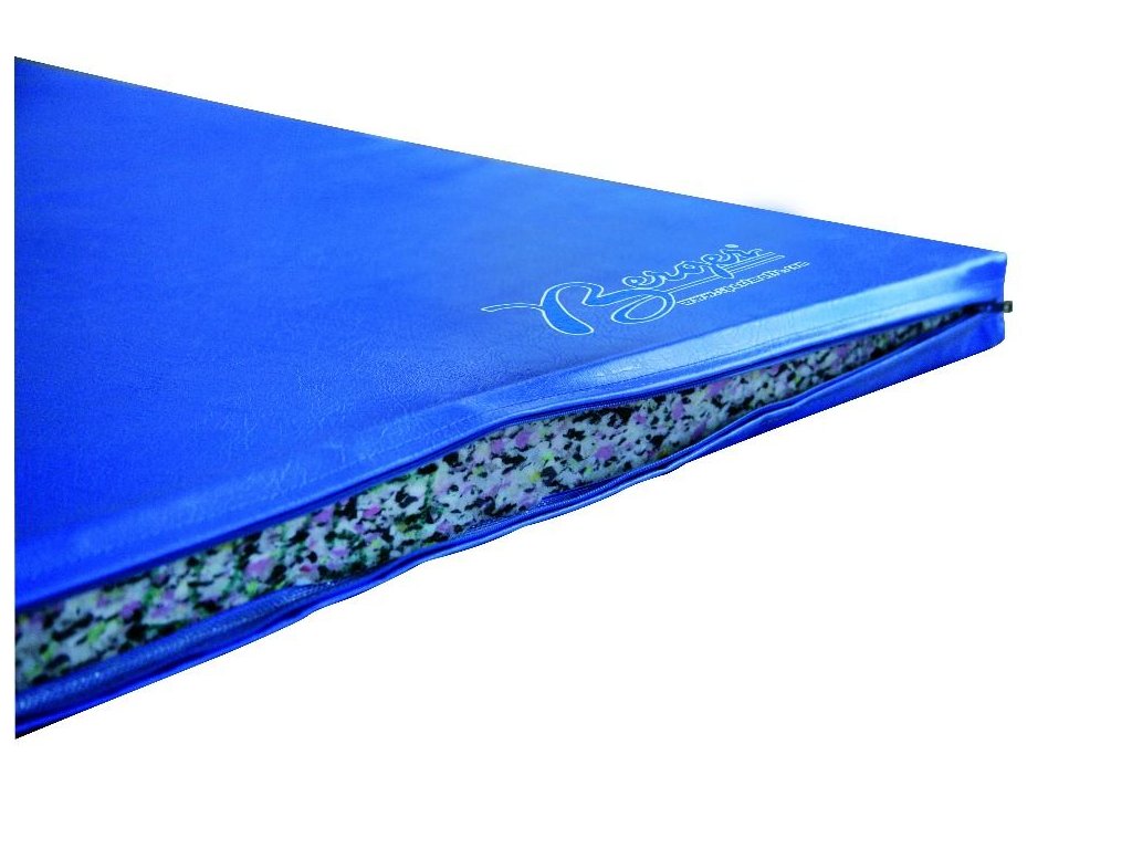 Jadro: lepený penový materiál RG 100 kg/m3, ťažko horľavý Poťah: látka Polygrip (PES látka odolná proti roztrhnutiu, vzor umelej kože) Farby: modrá Konštrukcia: skrytý zips na prednej strane, poťah natiahnutý cez penové jadro Možnosť výmeny jadra alebo poťahu Ďalšie vybavenie: pútka, pásy na suchý zips Možnosť spojenia podložiek vedľa seba do väčších plôch pomocou pásov na suchý zips. Oblasť použitia: školské a klubové športy, prostná a odraz do výšky 60 cm, domáce použitie Testované podľa normy EN 12503-1 typ 3Dodatočné parametre
