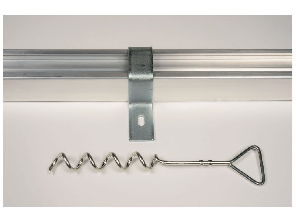 bezpečnostný systém na ukotvenie bránky proti prevráteniu na trávnatých ihriskách jednoduché špirálové kotvy a upevňovacie spony 1 balenie - 4 kusy ukotvenie pre 1 bránku pre futbalové alebo hádzanárske bránky mobilné určené pre profil - oceľový kruhový sieťový oblúkDodatočné parametre