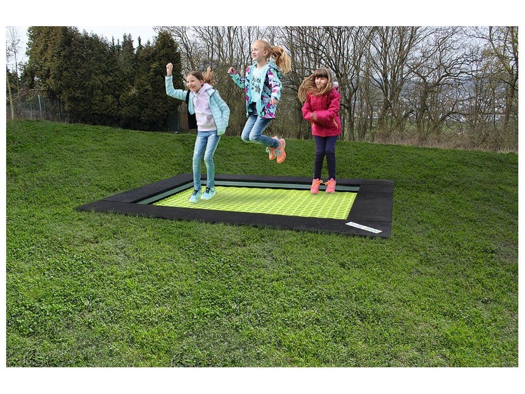skákací plocha: protiskluzová rohož (plastové články) chráněná proti vandalismu pro střední výšku skákání kolem dokola řada desek na ochranu proti pádu rám pro zapuštění trampolíny čištění: vyvěšením rohože Výhody: předmontovaná okamžitě připravená ke hře rychlá montáž bez betonáže včetně rámu k zapuštění jednoduché čištění vyvěšením rohože Vnější rozměry: 2.00 x 2.50 m Plocha na skákání: 1.35 x 1.85 m Plocha na ochranu proti pádu: 31.30 m2 Min. bezpečný prostor: 5.35 x 5.85 m Výška pádu: 1.00 m Počet uživatelů: 4 Bez nutnosti betonováníDoplňkové parametry